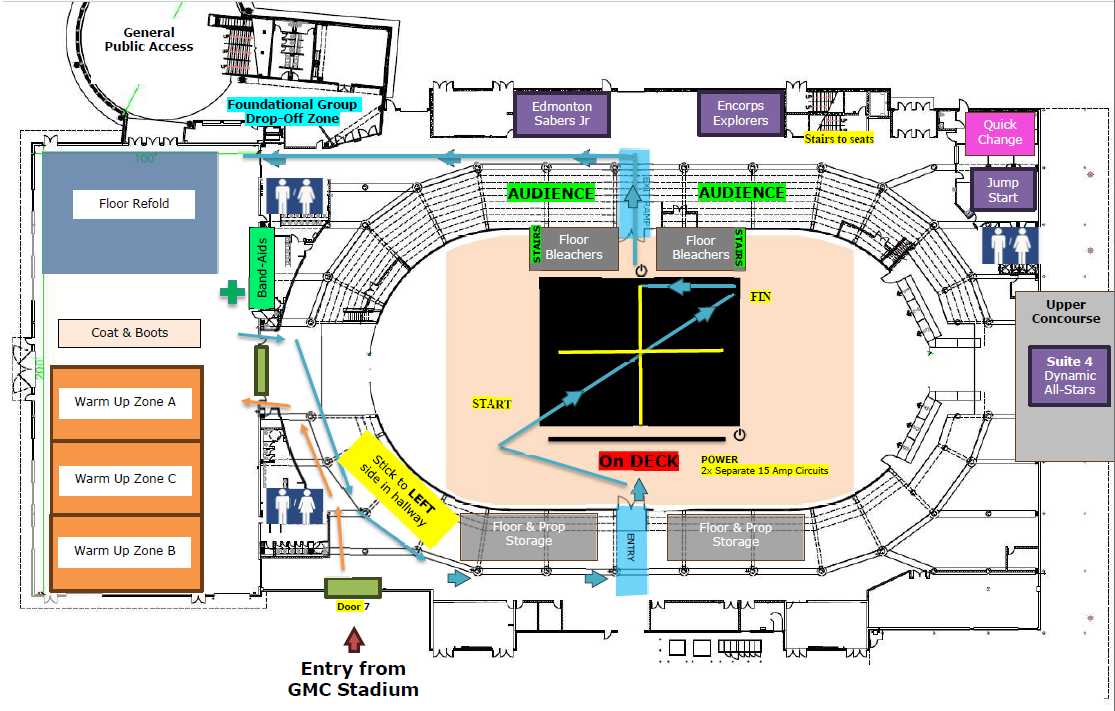 Performers should arrive at GMC Stadium anytime after 11:00AM || Encorps Explorers, Dynamic All-Stars and Jump Start should arrive at Nutrien Western Event Centre