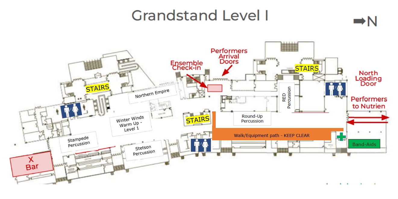 Percussion: schedule allows for lengthy warm ups in GMC. Please self-monitor and move to Nutrien when appropriate for your group.
